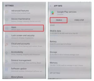 - Back to the Settings main menu, visit Apps =>> Find and Disable Google Play Services