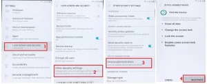 - Open Device Settings ==>> Security => Other Security Options==>> Disable Find My device